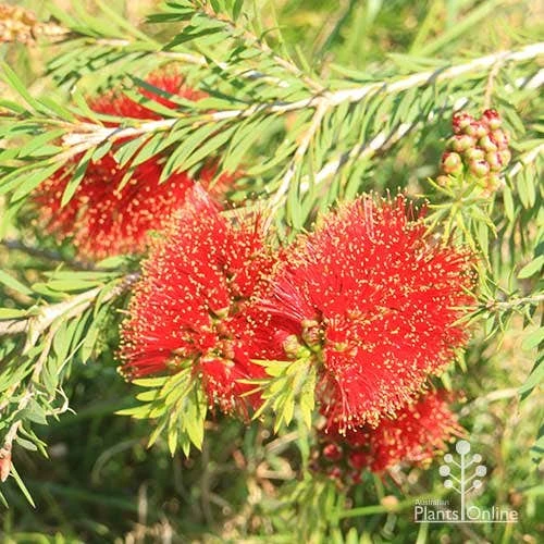 Cute-as-a-button groundcover bottlebrush with bright scarlet spring flowers that the birds will love, and stiff bristly foliage to keep the weeds down. Neat, compact, well-behaved and adaptable to most garden soils and climates. Just give it an annual light clip to keep it looking fine.