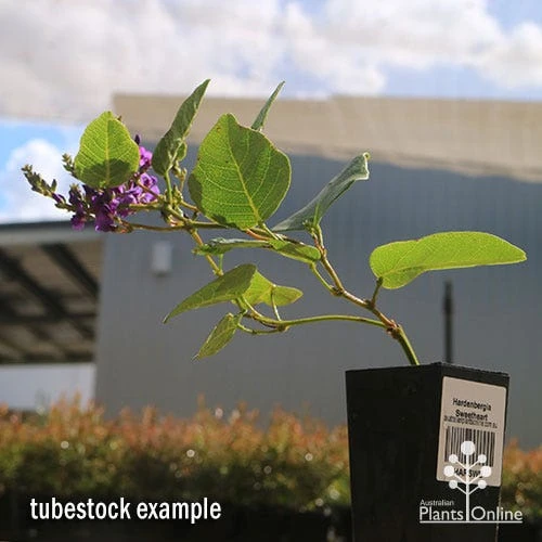 APPEARANCE:Â Native to Australia, this new Hardenbergia variety has larger leaves than the species form. Groundcover, or can be trained as a climber. Deep purple, pea-flowers during winter and spring.