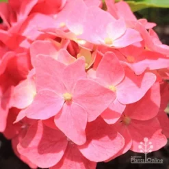APPEARANCE : Dwarf deciduous shrub with big soft light green leaves and big, deep rose-pink flower clusters. Colour is consistent regardless of the soil pH, and deepens as the flowers open and mature.