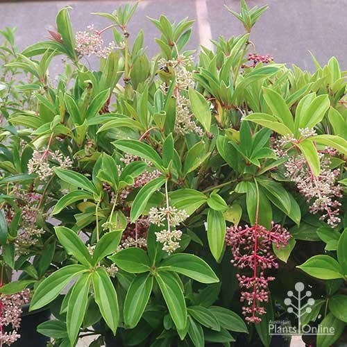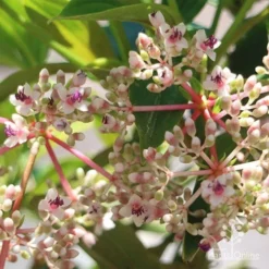 Stunning conical clusters of deep pink buds open to paler pink flowers, like a bunch of grapes at the end of every stem, and lasting months. Suited to pots, tropical style gardens and frost-free areas with good humidity.